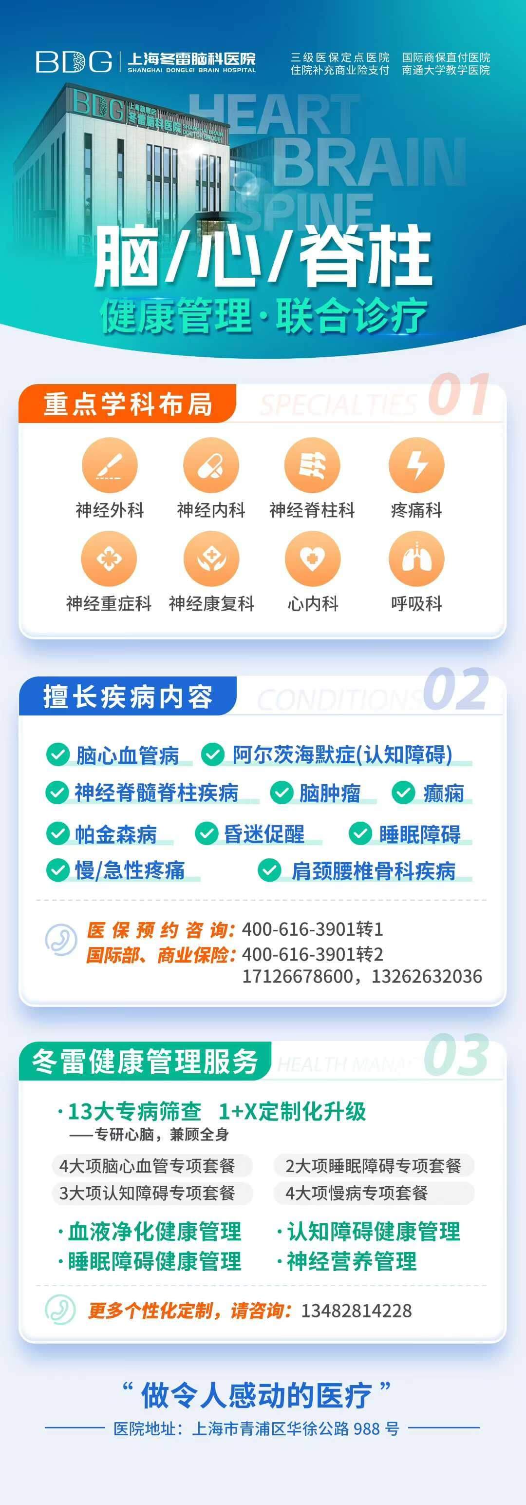 【温馨提示】 1、上海冬雷脑科医院已全面开诊,专注【脑·心·脊柱】及相关疾病,门诊咨询预约:400-616-3901转1