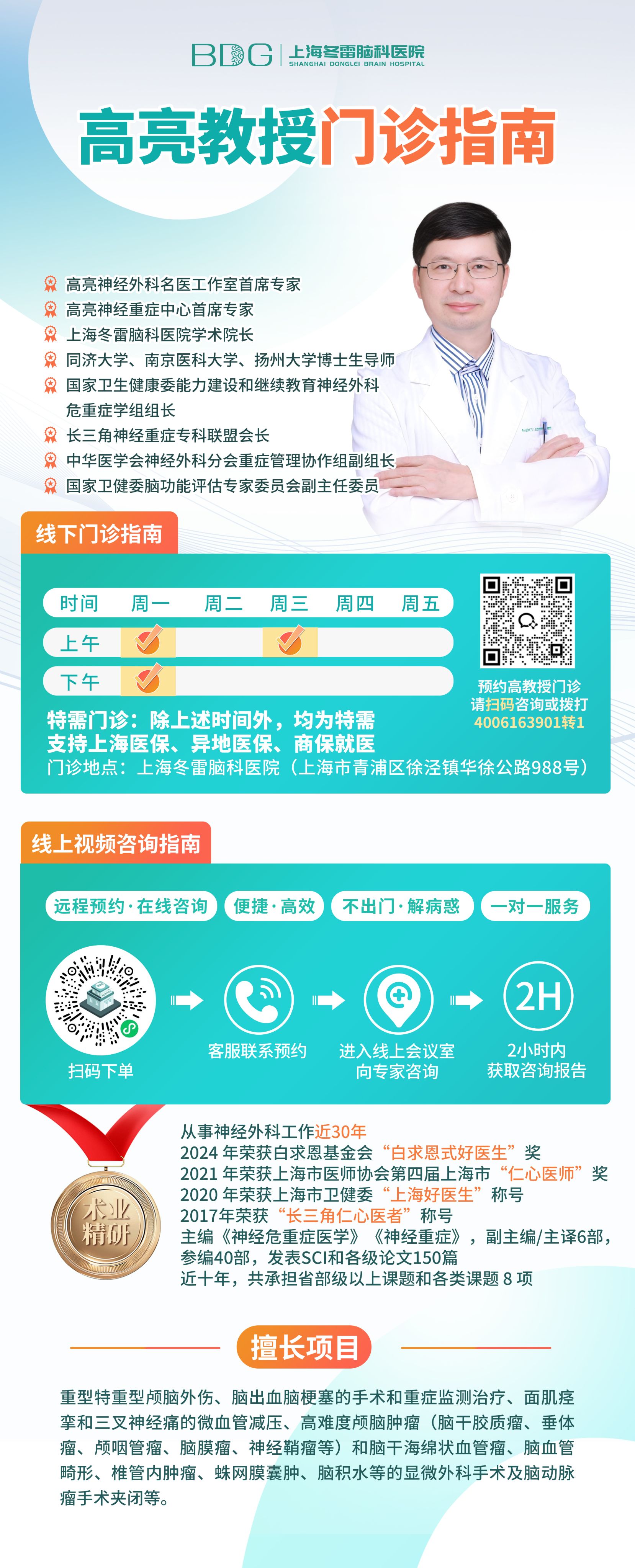 【门诊通知】上海冬雷脑科医院高亮教授,新增门诊时间....[详情]